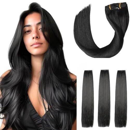 • Clip In Hair Extensions & Seamless Invisible Hair Pieces 60cm 4 Pieces Black