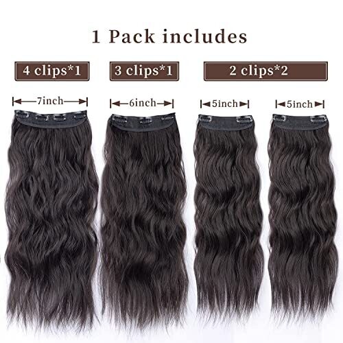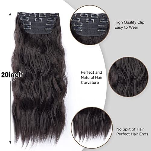 • Clip in Synthetic Hair Extensions Long Wavy 4pcs Thick Hairpieces Dark Brown Fiber Double Weft Natural Hair Extensions 20 Inch for Women (4pcs, 20inch, 6a#)