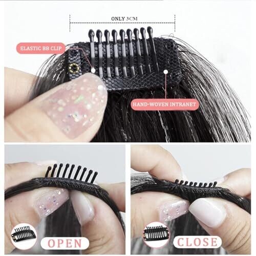 Instantly transform your look with two clip-in wavy side bangs for a seamless blend. 9.8-inch natural black length adds versatile volume, while lightweight, discreet clips allow easy, damage-free styling at home or on the go.