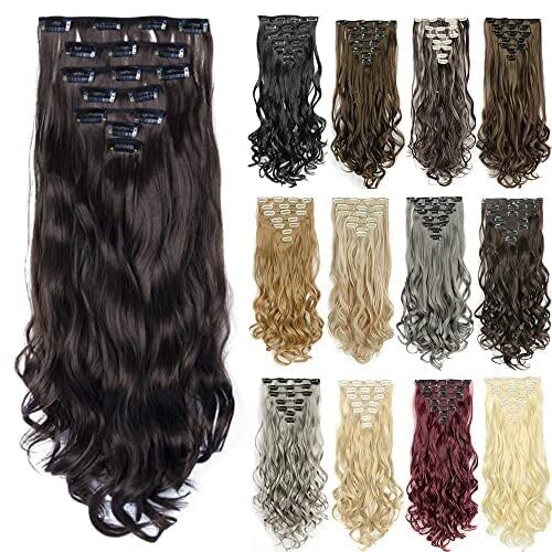 • Imissu 22 Inch 7pcs Long Curly Clip-In Hair Extensions Natural 16 Clips (Black Brown)