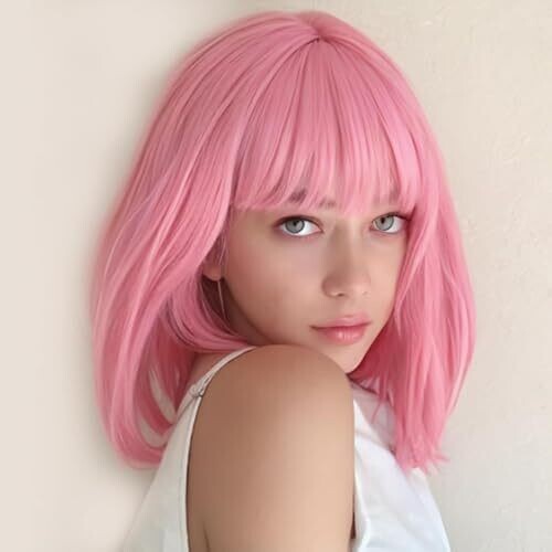 Qauarumsun Pink Bob Wig with Bangs for Women...