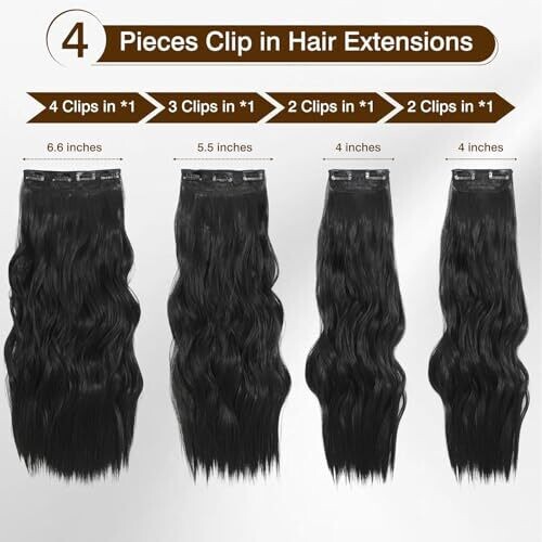 24 inch long, this set adds dramatic volume with a soft, wavy look. The 4-piece double-weft design is lightweight, odor-free, and easy to clip in for quick styling that blends with many hair colors.