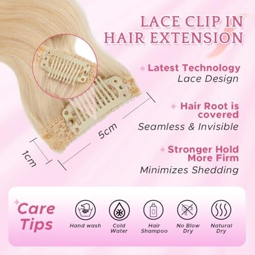 • Segohair Clip In Real Hair Extension 12 Inch, 33G 6 pcs, Invisible Lace Weft, #60R Platinum