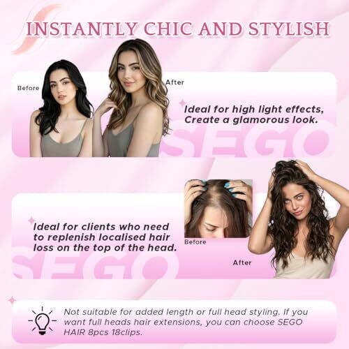 • Instant volume and length in minutes with a secure 6-piece clip-in set