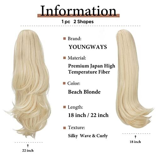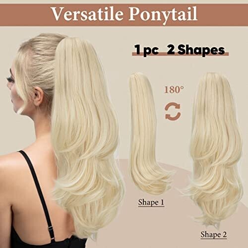 Transform your look with an 18-inch clip-in ponytail that adds length and subtle volume in seconds. Two-in-one styling with straight or wavy textures and a fluffy, layered silhouette. Easy to attach, blends with beach blonde for a polished finish.