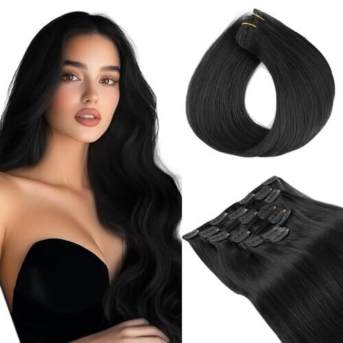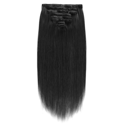 Lorien Clip In Hair Extensions Real Human Hair, 18 Inch, 1B Natural Black, 100% Brazilian Remy Clip 8pcs with 18 Clips Double Weft