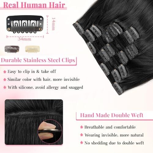 • Stainless steel clips are secure and easy to attach, with soft protective rubber to keep your scalp comfortable.