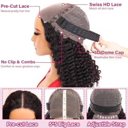 • Glueless design with an adjustable cap and breathable 3D elastic dome band for a secure, comfortable fit all day long.