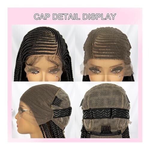 Knotless Box Braid Wigs 34 Inch, 360 Full Lace Braided Wig for Black Women, Synthetic Black Braided Wig