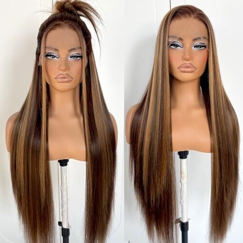 • Mitimes 360 Honey Blonde Wig Glueless Highlight Straight Lace Front Wig 32In