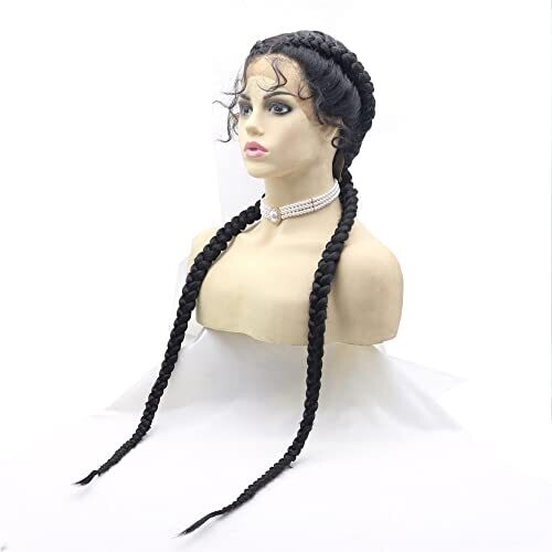 • Xiweiya 36" Black Braided Wig 2 Twist 360 Full Lace Wig for Women Drag Queen Halloween Cosplay
