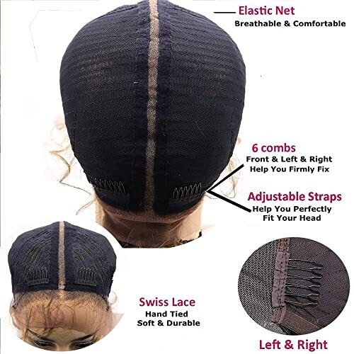 Half Hand Tied Lace Front Wig with Lace 2.5 Inches Parting Space in Front. 100% Soft Heat Resistant Fiber. 150-180% Density. Circumference 22.5 Inches Stretched Medium Cap (Average Cap Size) with Adjustable Straps and 3 Combs. Synthetic Hair Heat Resistant up to 180 Degrees Centigrade. Synthetic Hair Have Super Memory Effects, the Curls More Flexibility and Vigor.