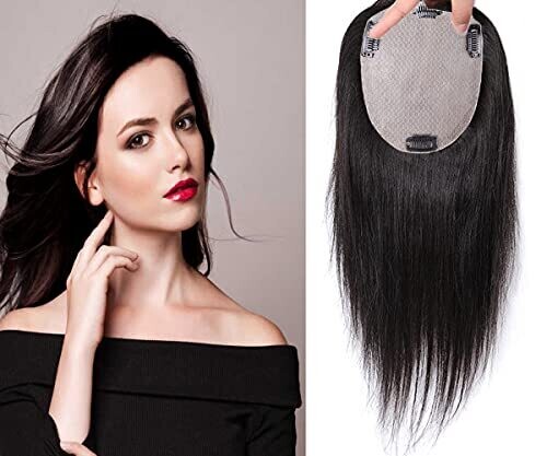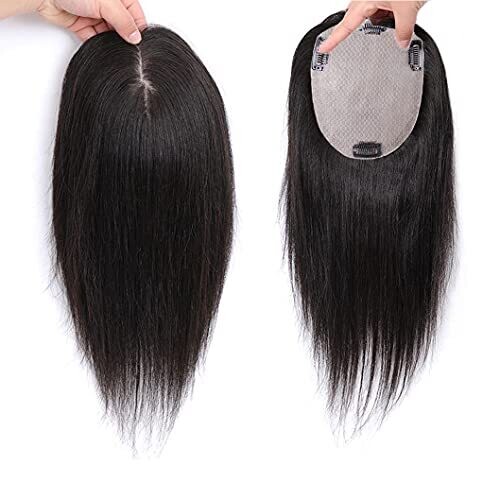• 12" Remy Human Hair Crown Topper for Women Hand Woven 12X13cm Silk Base Top Hair Piece Clip-In Toupee for Thinning Hair Natural Black