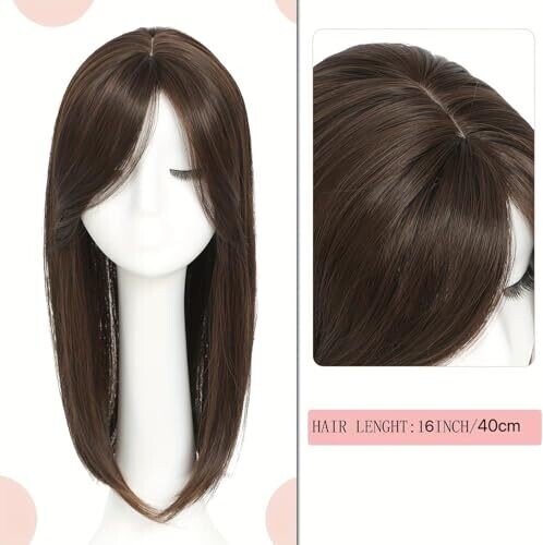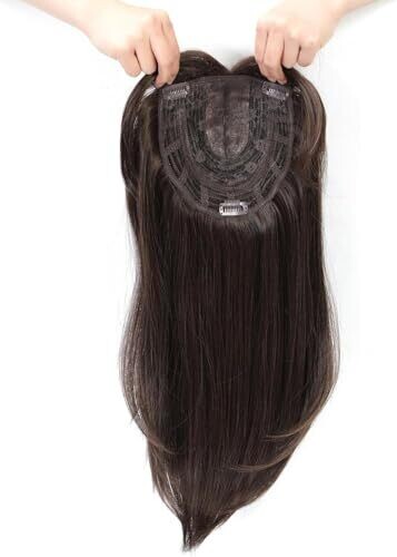 16Inch Short Straight Hair Topper Realisitc Silk Base Topper (6X6cm) for Women (Dark Brown)