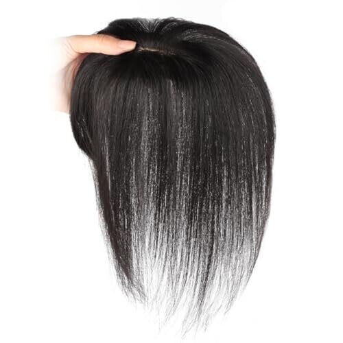 • Hair Toppers for Thinning Hair Women Real Hair 9.8 Inch Silk Base Clip-In Extensions Natural Black