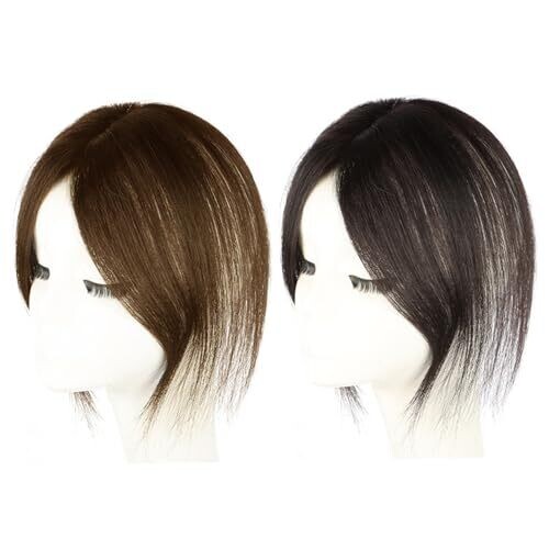 Human Hair Toppers for Women Clip-In Crown Toppers with 3D Air Bangs for Mild Hair Loss Grey Hair (Black, 8 Inch)