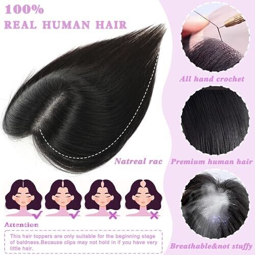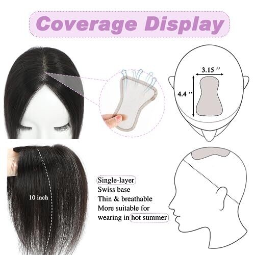 Lagomance Hair Toppers for Women offer a natural, seamless solution for thinning hair with 100% real human hair and a lightweight 10 inch Swiss base. It blends with your hair, adds volume, and is easy to wear and style.