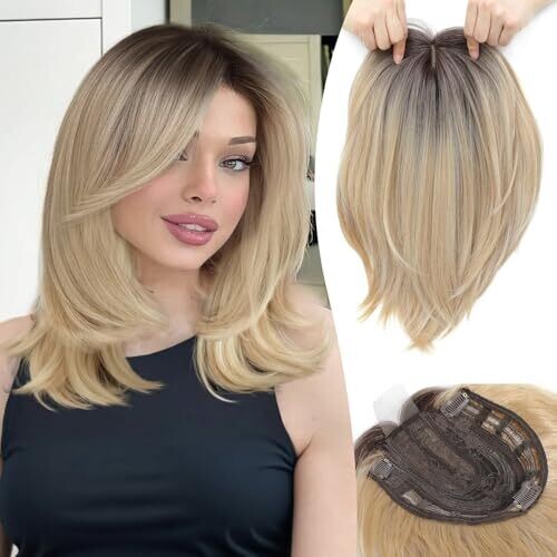 Ms Taj 12 Inch Hair Topper for Women with Thinning Hair 6.5 X 6.5 Large Base with Bangs Ombre Blonde