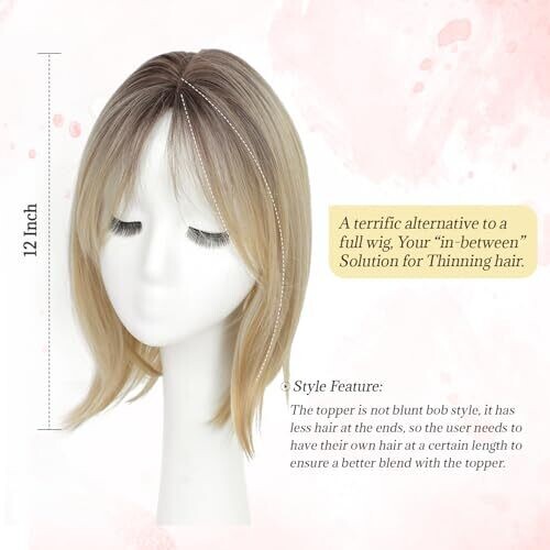• Ms Taj 12 Inch Hair Topper for Women with Thinning Hair 6.5 X 6.5 Large Base with Bangs Ombre Blonde