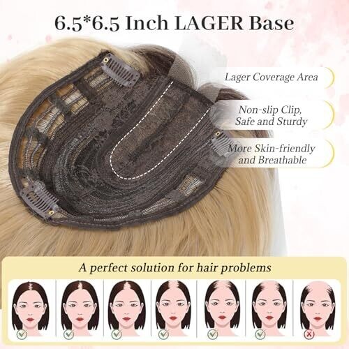• Ms Taj 12 Inch Hair Topper for Women with Thinning Hair, featuring a 6.5" x 6.5" large base and bangs for natural coverage.