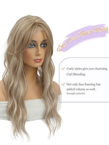 • Experience luxurious, natural-looking volume with 20-inch wavy curls in a honey blonde shade with subtle highlights.