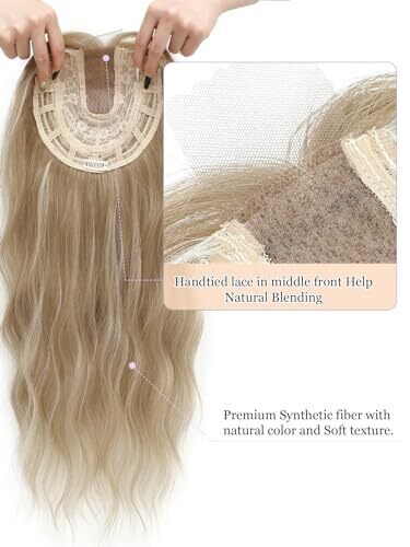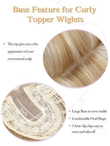 • Paneway Hair Toppers for Women 20 Inches Long Wavy Curly Honey Blonde with Highlights Clip-In Wigs