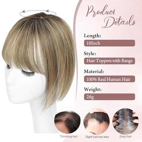 - 360-degree full hair coverage, suitable for thinning hair and high foreheads.