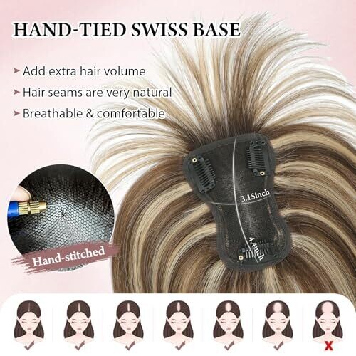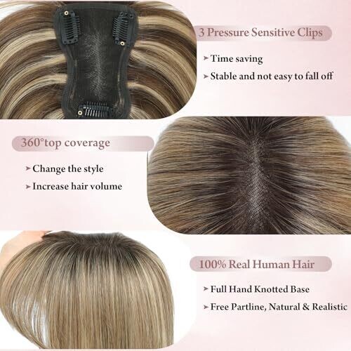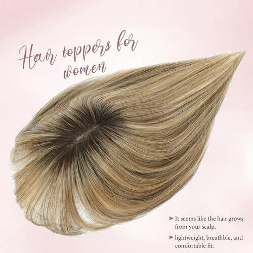 - Premium human hair topper designed to blend seamlessly with natural hair for a full, 鈥渇lush鈥� look.