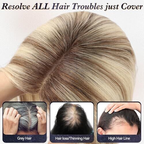 Starluck Hair Toppers for Women 100% Real Human Hair, 12 Inch Ombre Light Blonde with Dark Root