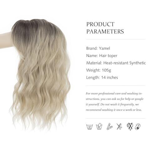 • Yamel Hair Topper Women Natural Synthetic Pieces 14-Inch Balayage Blonde Wave Topper with Bangs