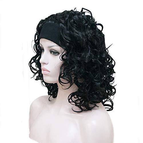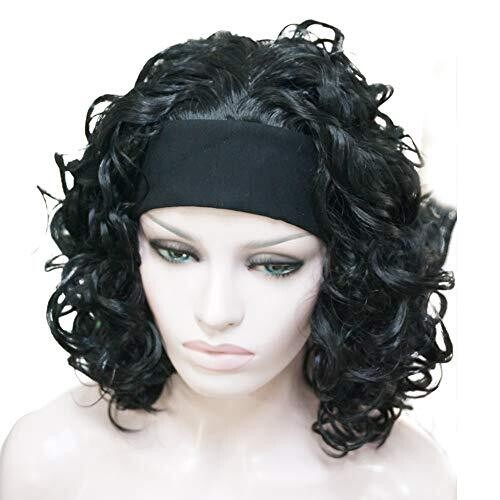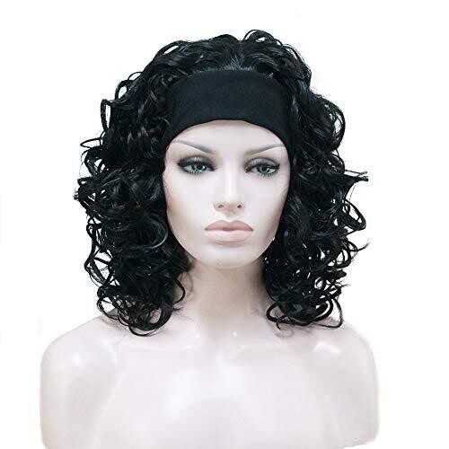 • Aimole Short Curly Black Wigs 3/4 Half Wig with Headband (1 Black)