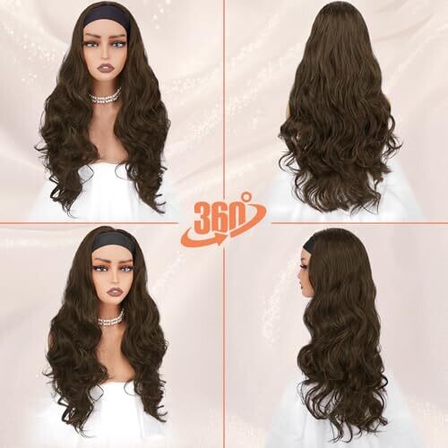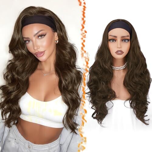 • Barsdar (Light Brown) Wavy Headband Wig 66 cm Long Glueless Headband Wig for Women