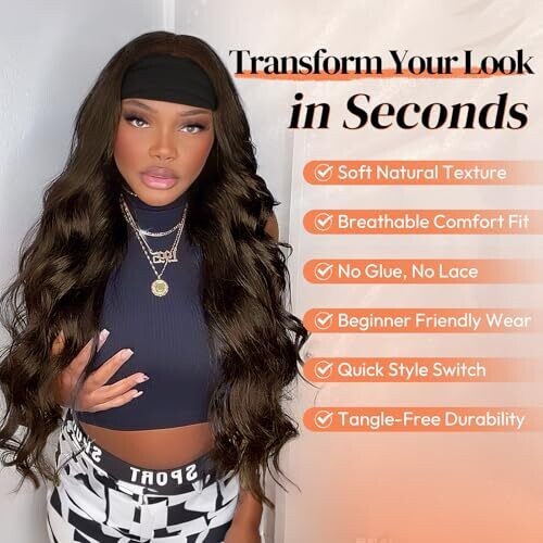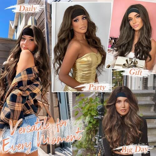 Barsdar light brown wavy headband wig is 66 cm long and designed for a natural, salon-ready look. Glueless headband fit with an adjustable Velcro strap ensures quick on-and-off wear, while the loose waves add volume for everyday or special occasions.