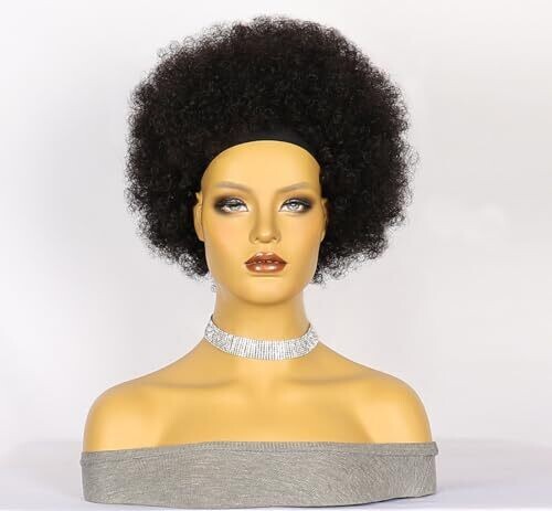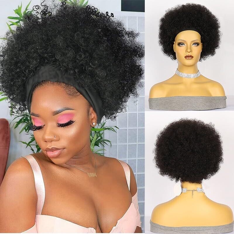 Black Afro Curly Headband Wig with Bangs for Black Women (Black, 12cm) Scarf Wigs