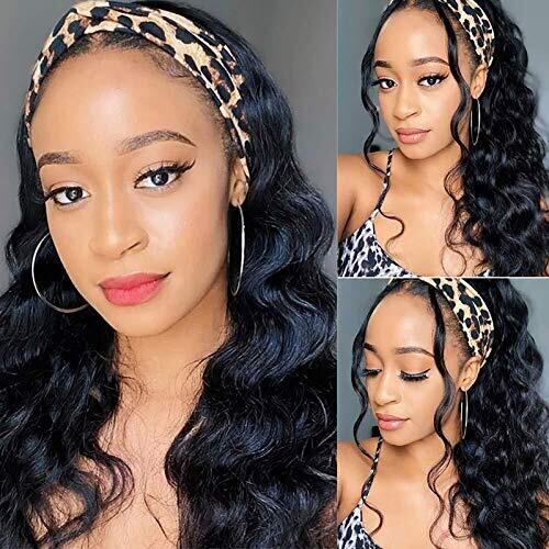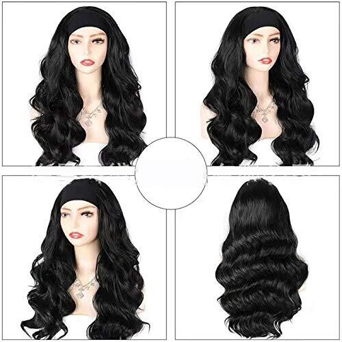 • Natural Looking Long Headband Wig for Black Women Wavy Synthetic Wig with Headband 22 Inches