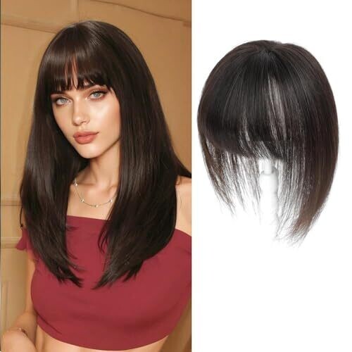 • Hair Toppers for Women Human Hair Topper with Bangs, Hand-Woven Swiss Base (Dark Brown)
