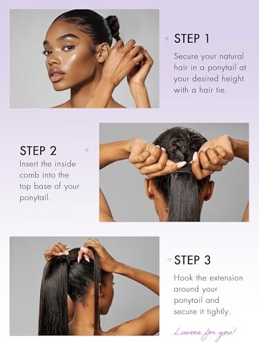 Ponytail extensions with clip-in capability; designed for at-home styling and easy transformation.