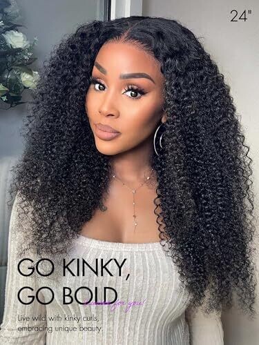 Skouty Kinkycurly 24 Inch Human Hair Wig 13X4 HD Lace Front 180 Density Glueless Wig