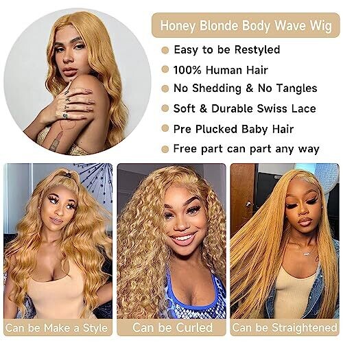 • Colorful honey blonde shade and easy styling—dyable, straightenable, bleachable, and curlable for personalized looks.