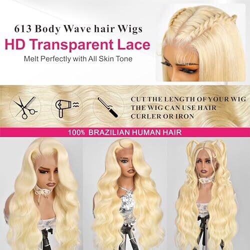 - Experience a luxurious 613 blonde lace front wig with full body wave texture and 200 density for bold, natural-looking volume.