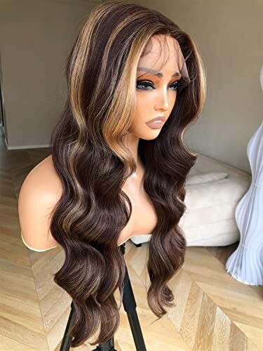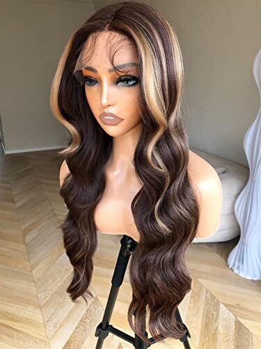Benkeer Honey Blonde Ombre Lace Front Wig, Body Wave Highlight, Pre-Plucked