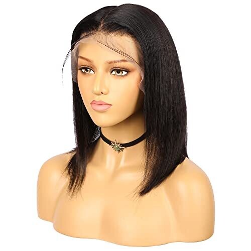 Black Human Hair Lace Front 13-4 Gule-Less Wig, 12 Inch Bob Straight Hair Style 150% Density Wig