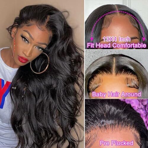• Body Wave Lace Front Wigs Pre Plucked with Baby Hair 150% Density Unprocessed Brazilian Virgin Hair (30cm)
