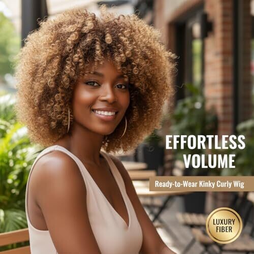 • Experience a natural-looking blonde afro kinky curly wig with bangs, crafted for daily wear and special occasions.