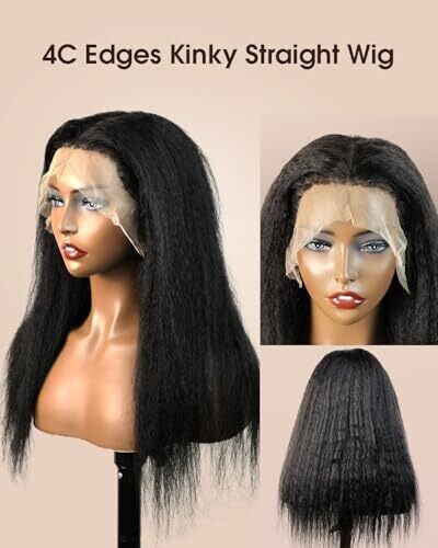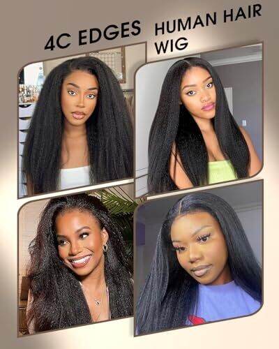 Yaki Stairght 13X4 HD Human Hair Wigs Wavy Edge Lace Front Wig with Pre Hairline Density