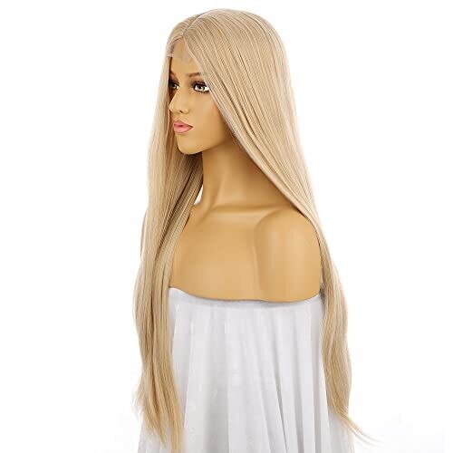 • Mixed Blonde Lace Wig 13-4-3 Synthetic Hair, 26 Inch Silky Straight