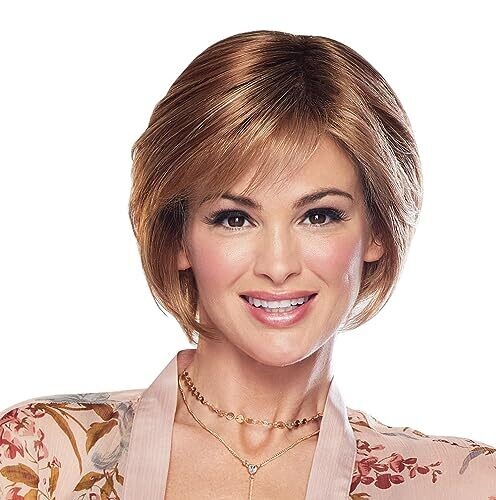 This Raquel Welch Muse wig features a lace front and monofilament cap for natural movement and appearance. Color SS29/33 Iced Pumpkin Spice. Cap size Average, length Short, providing a flattering, easy-to-wear style.