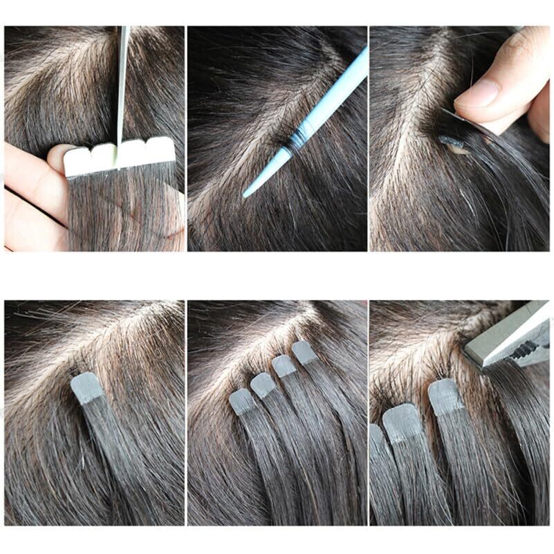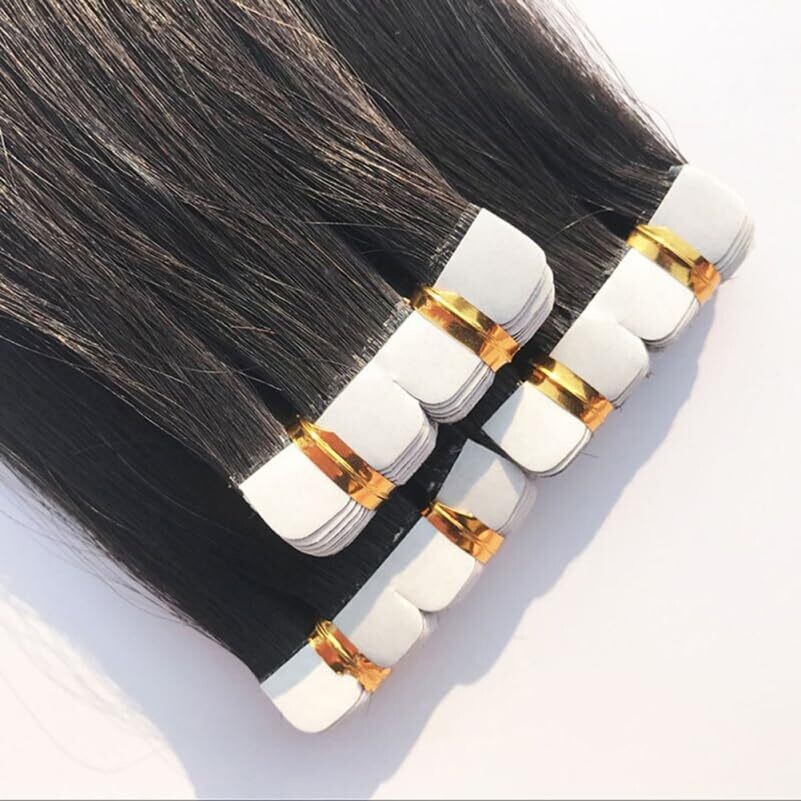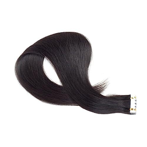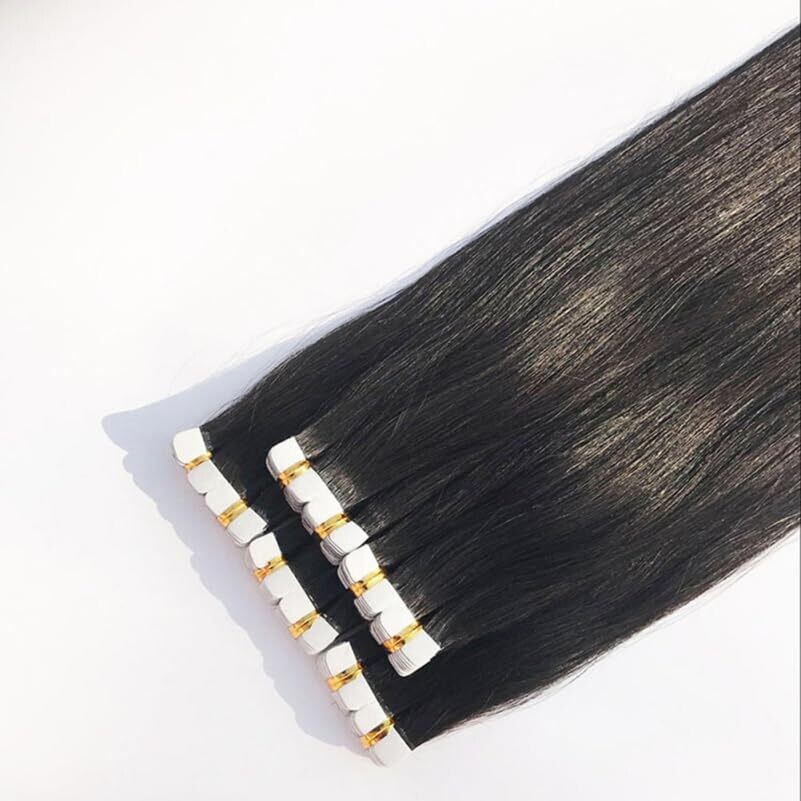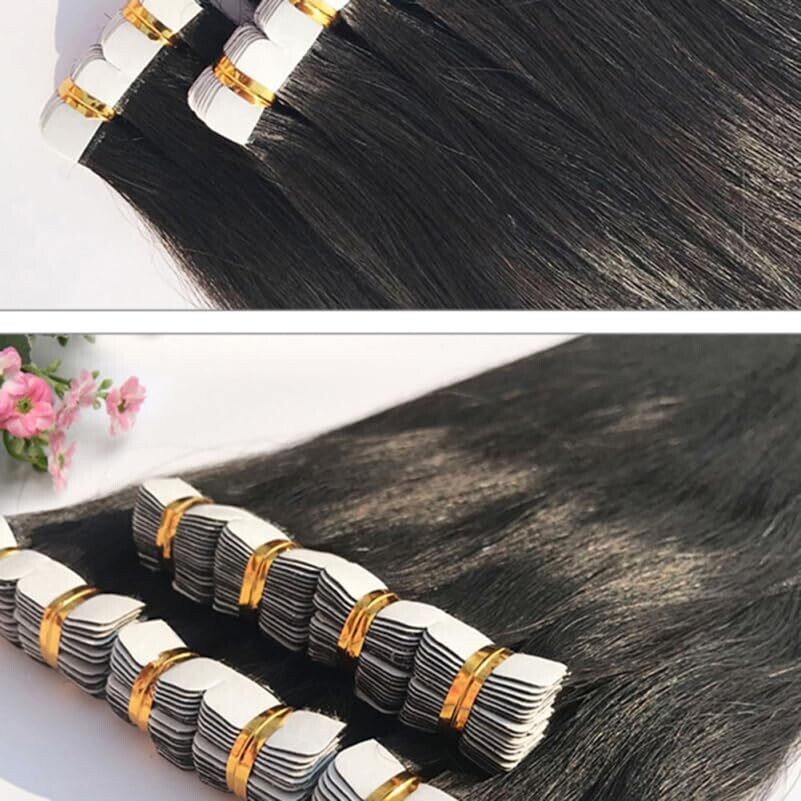 Biudeco Tape-In Hair Extensions - 4X45 cm Seamless Black Straight, Real Hair, Reusable