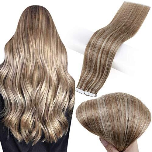 • Full Shine 20 Piano Color (#10 Golden Brown and #613 Bleach Blonde) Tape-In Extensions Full Head 40 pcs