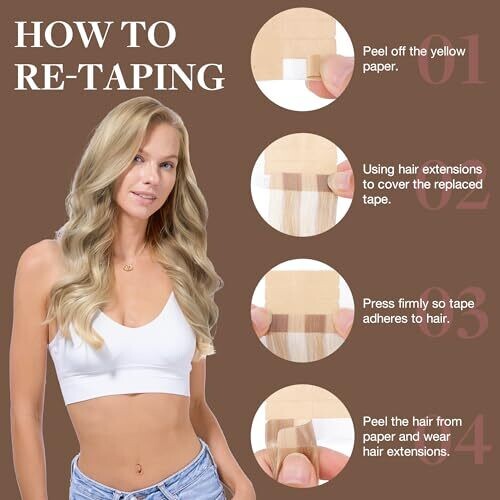 Premium real Remy hair tape-in extensions blend for a natural look. Lightweight, discreet bonds, varied lengths and shades for sleek straight styles to voluminous locks. Easy to apply and remove with durable tapes, maintaining softness and low shedding with proper care.